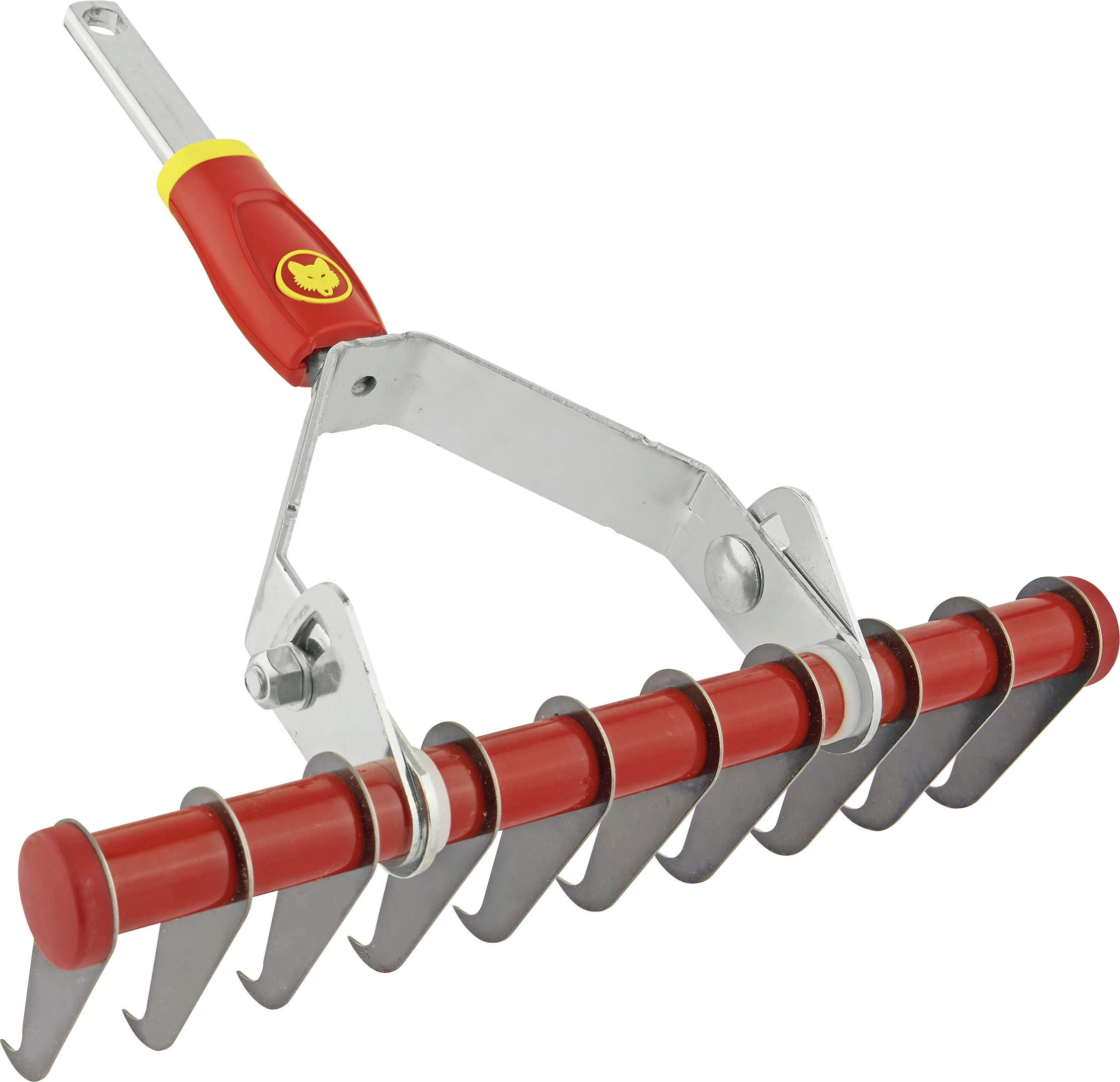 Gründliche Reinigung des Rasens von Moos und Rasenfilz. Pendelnd gelagerte Vertikutiermesser.